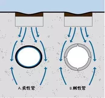 塑料管屬于柔性管,在受外壓負(fù)荷時(shí),柔性管和剛性管的承受負(fù)載的機(jī)理是全部不同的。柔性管在受壓破壞之前,可以有較大的變形,而剛性管在受外壓破壞之前不可能有較大變形。當(dāng)剛性管受外壓時(shí),負(fù)載全部經(jīng)過管材壁傳遞到底部的管床上,在管材壁內(nèi)產(chǎn)生彎矩,隨著管材直徑加大,管壁的彎矩和應(yīng)力急劇加大,所以大直徑的混凝土排水管常常需加鋼筋,而柔性管在受壓破壞前先變形----橫向外擴(kuò),管材周圍的回填土壤可以起到阻止柔性管變形和外擴(kuò)的作用,外壓負(fù)載就被傳遞和分?jǐn)偟街車幕靥钔林腥チ恕K?,在同樣外壓?fù)載下柔性管管壁內(nèi)的應(yīng)力較小,它和周圍的回填土共同承受負(fù)載,管土共同作用。因此,塑料埋地排水管不需和剛性混凝土管一樣的強(qiáng)度和剛度,在合理的剛度下,是全部可以達(dá)到使用要求的,這一點(diǎn)已被歐洲發(fā)達(dá)的應(yīng)用實(shí)踐所證明。